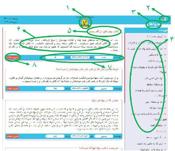 با بردن موس روی هر یک از عناوین صفحات ویژه، ده مورد از تازه‌ترین مطالب صفحه مربوطه نمایش داده می‌شود. (تصویر شماره ۲)